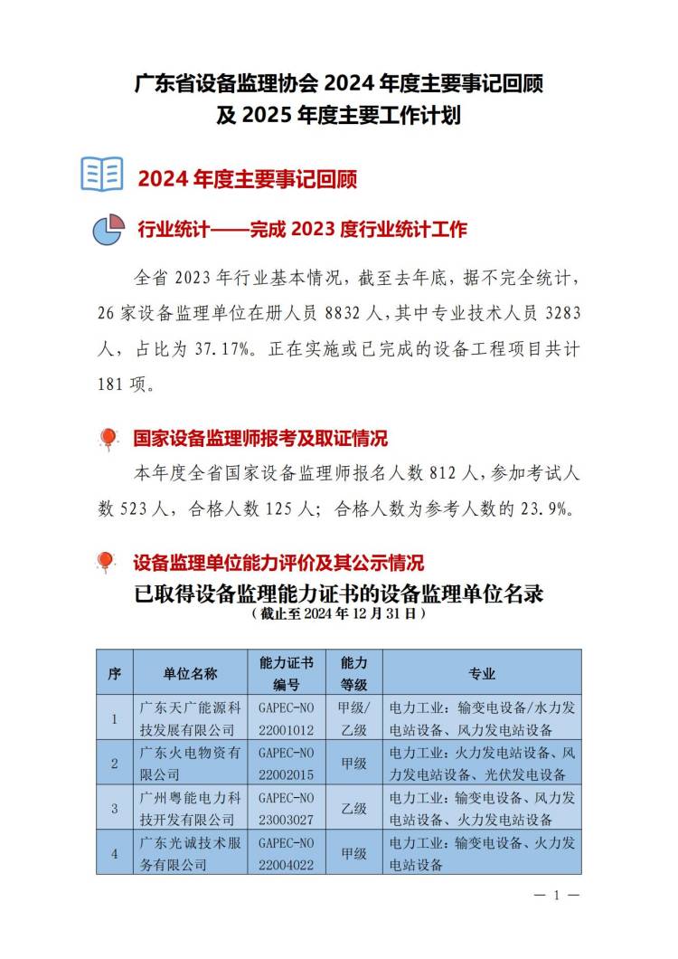广东省设备监理协会2024年度主要事记回顾及2025年度主要工作计划